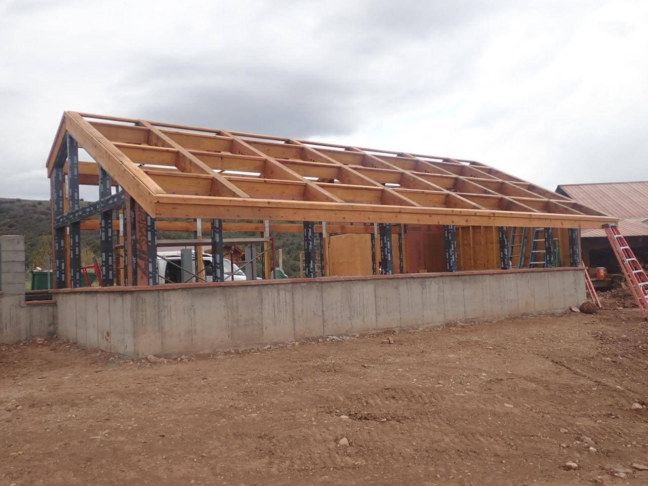 these may be simple beams or more complex trusses. Ensure that each rafter is evenly spaced