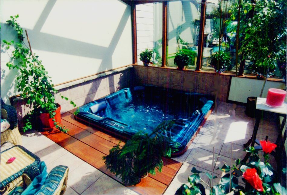Year round vacation custom solar spa sunroom. Just imagine a perfect sunny bright atmosphere where relaxing is the focal point, sharing coffee or tea with family and friends, in a room where you can put all of your house plants, enjoy a dip in the hot tub, lap pool or a place to watch favorite TV entertainment.