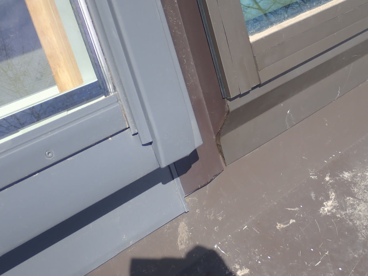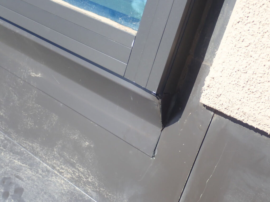 I viewed numerous pieces of trim coil haphazardly placed with out screws and without the use of the proper silicone caulking . Instead of securing the flashing with screws to fasten the coil much of the existing trim coil was attached with sticky window wrap which over time, melted and separated from the vinyl frame…, causing a vulnerable separation allowing water to enter where it should not.